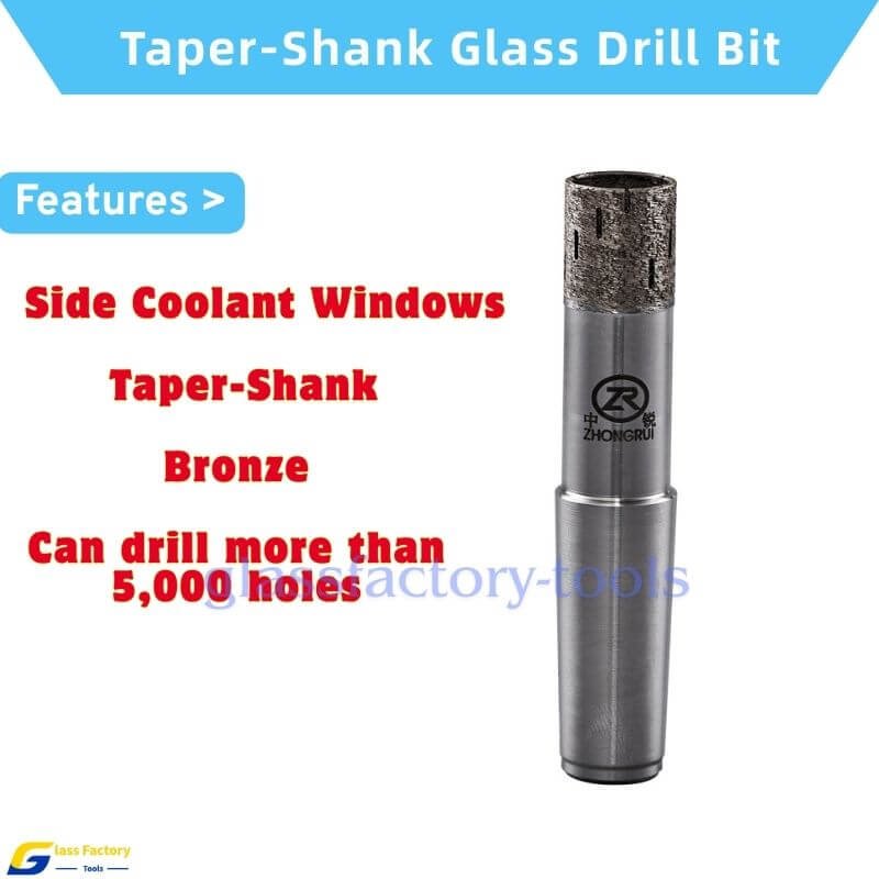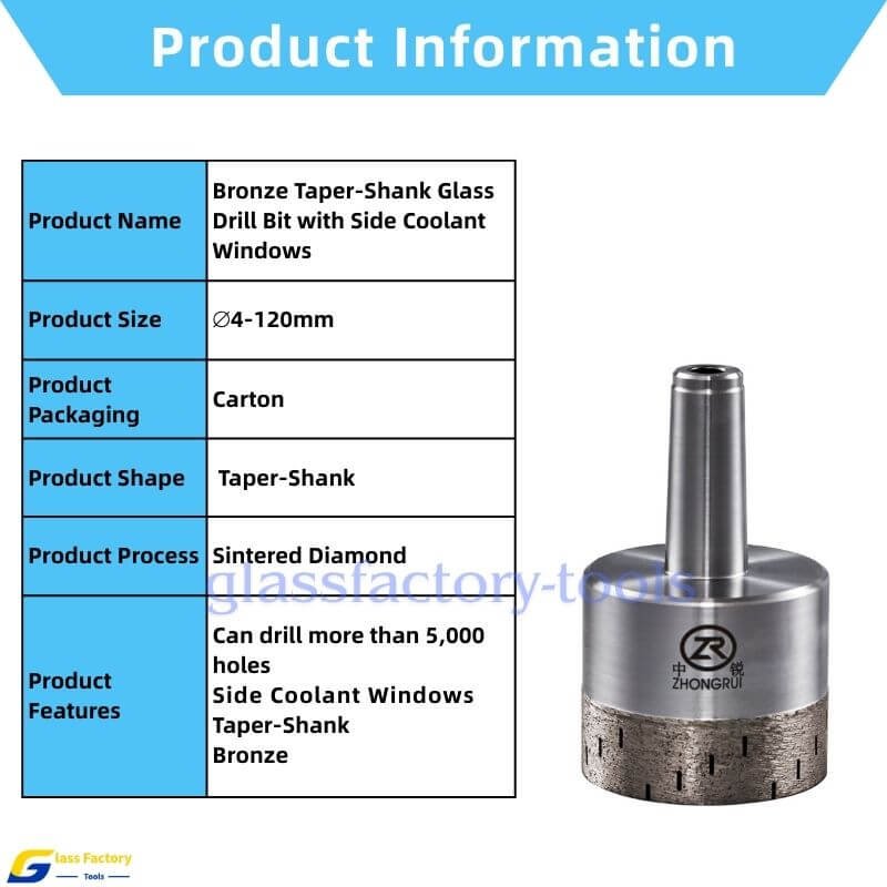 Bronze Taper-Shank Glass Drill Bits with Side Coolant Windows For Glass Drilling Machine