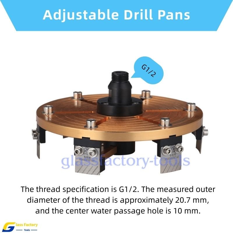 Glass Drill Bits, Adjustable Drill Pans, Rotary Hole Openers, Large Diameter Holes, Glass or Tiles.