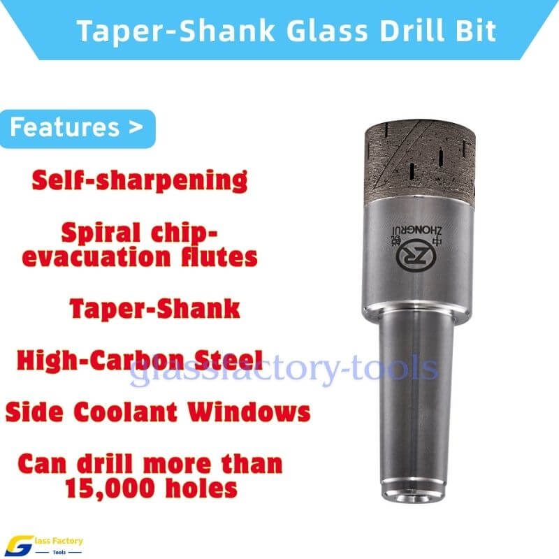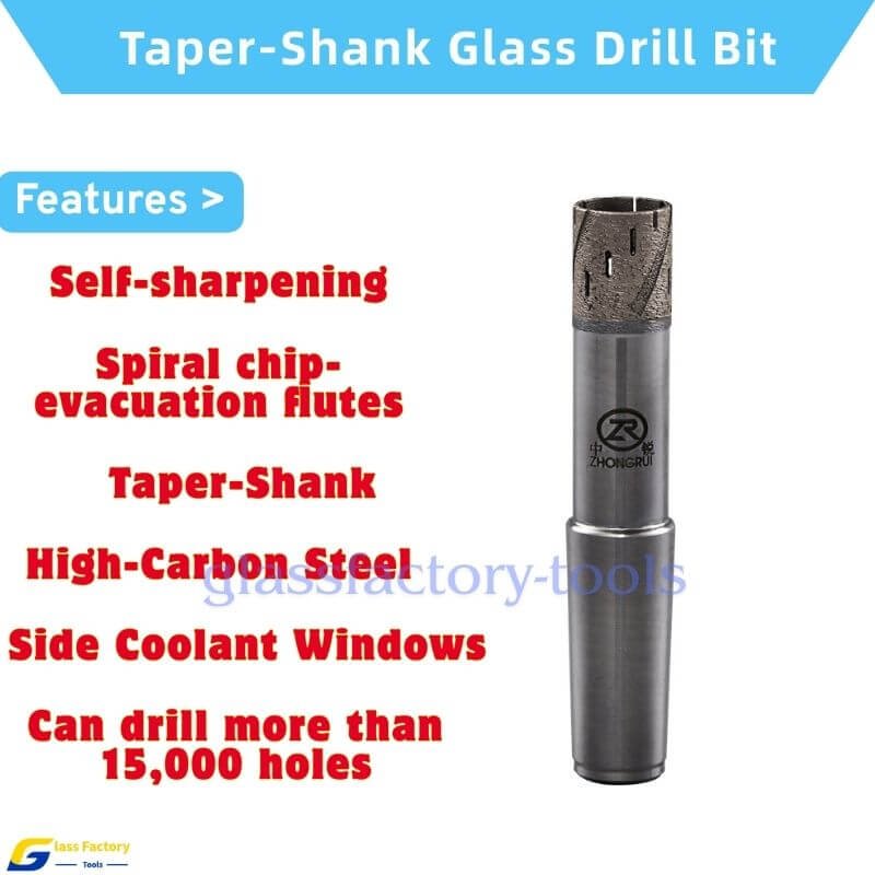Self-Sharpening Spiral-Grooved High-Carbon Steel Taper-Shank Glass Drill Bits with Side Coolant Windows For Glass Drilling Machine