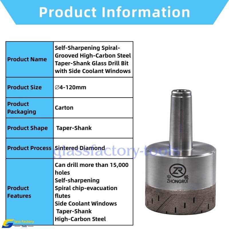 Be the first to review “Self-Sharpening Spiral-Grooved High-Carbon Steel Taper-Shank Glass Drill Bit with Side Coolant Windows”