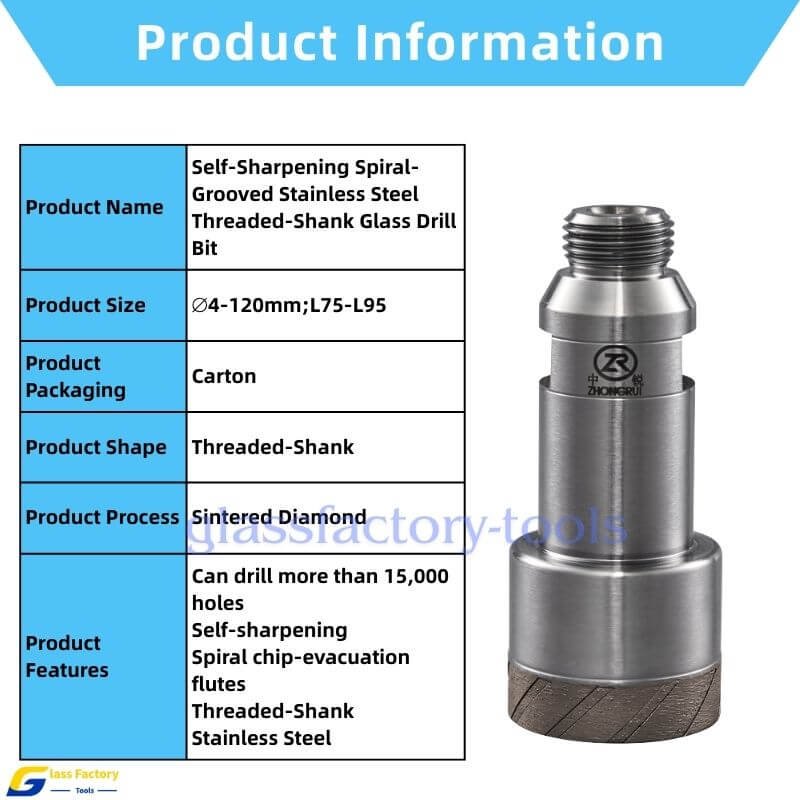 Be the first to review “Self-Sharpening Spiral-Grooved Stainless Steel Threaded-Shank Glass Drill Bit”